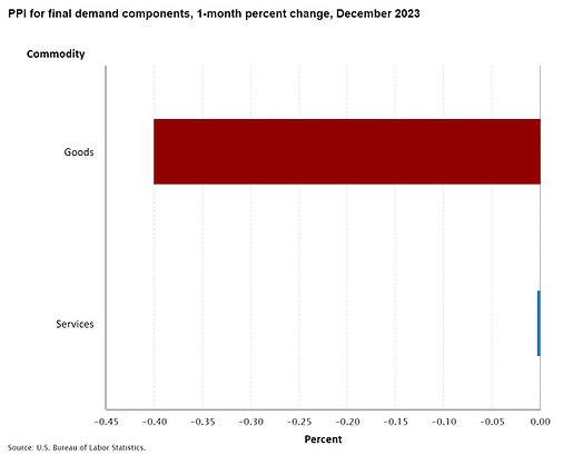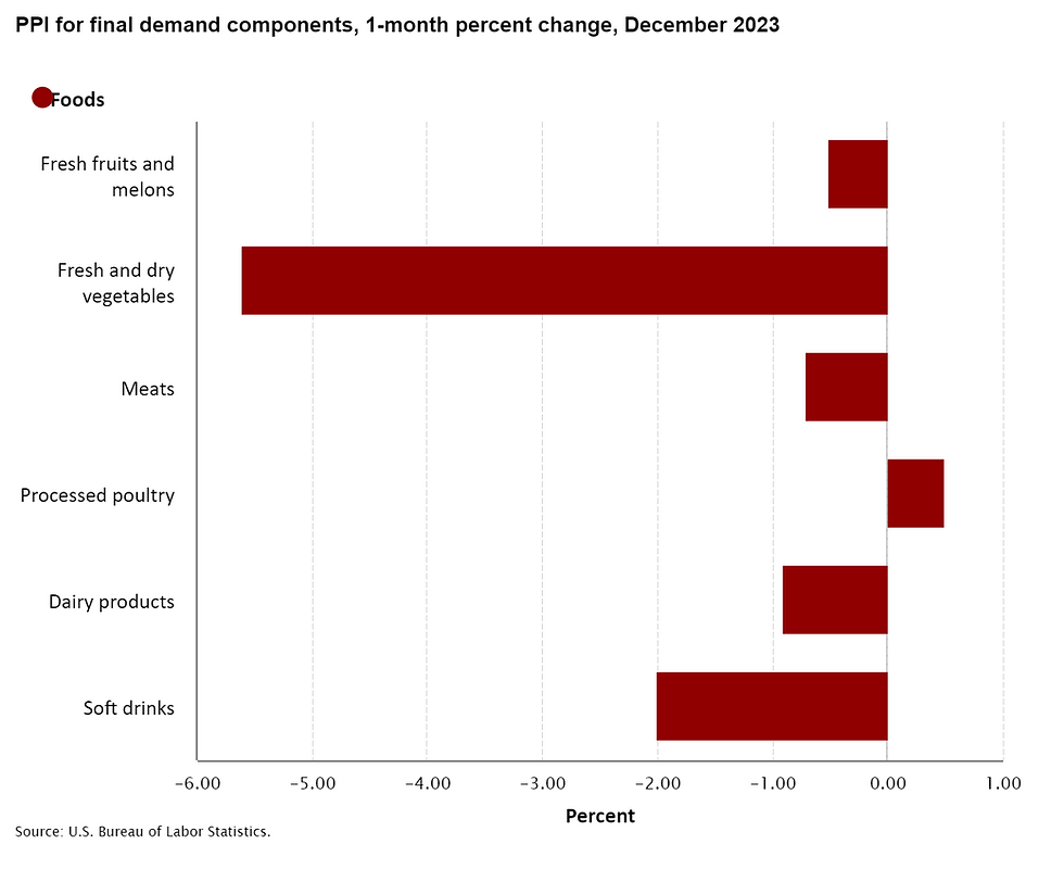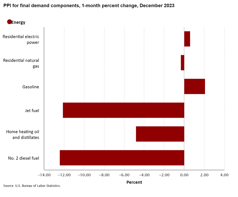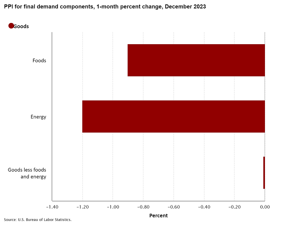 The Producer Price Index for final demand fell 0.1 percent in December. Prices for final demand goods decreased 0.4 percent, while the index for final demand services remained unchanged. Prices for final demand rose 1.0 percent in 2023.